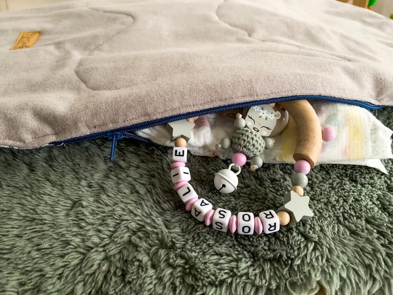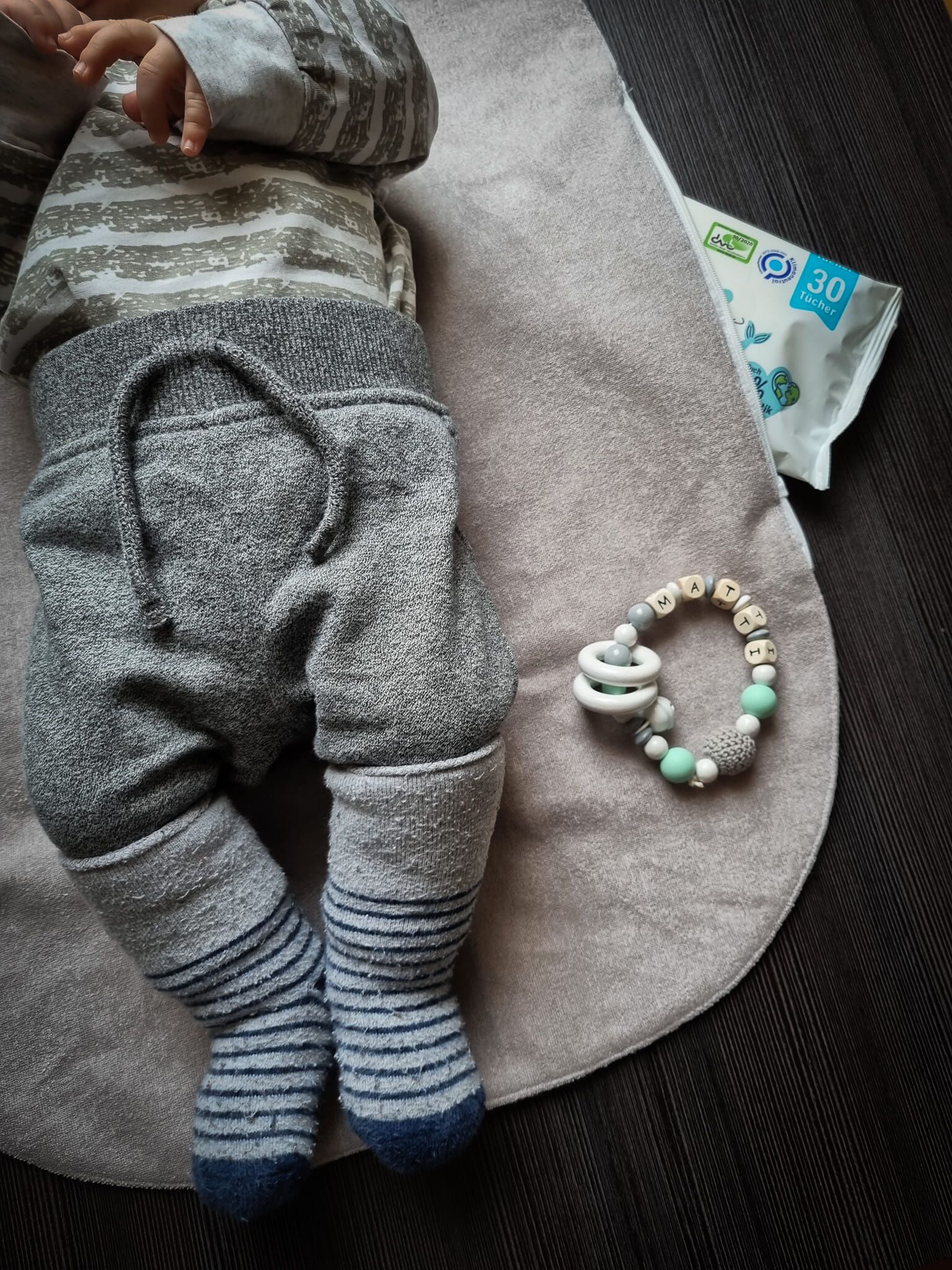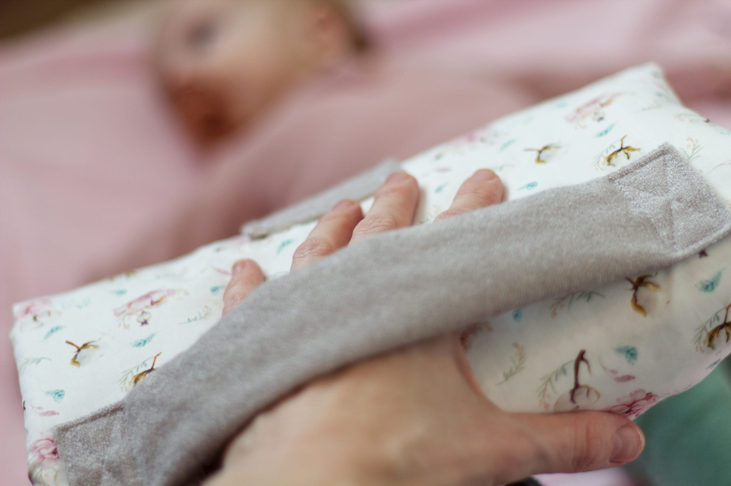 oder Baumwollstoffe. Für die Wickelunterlage empfehlen wir speziellen von der Innenseite