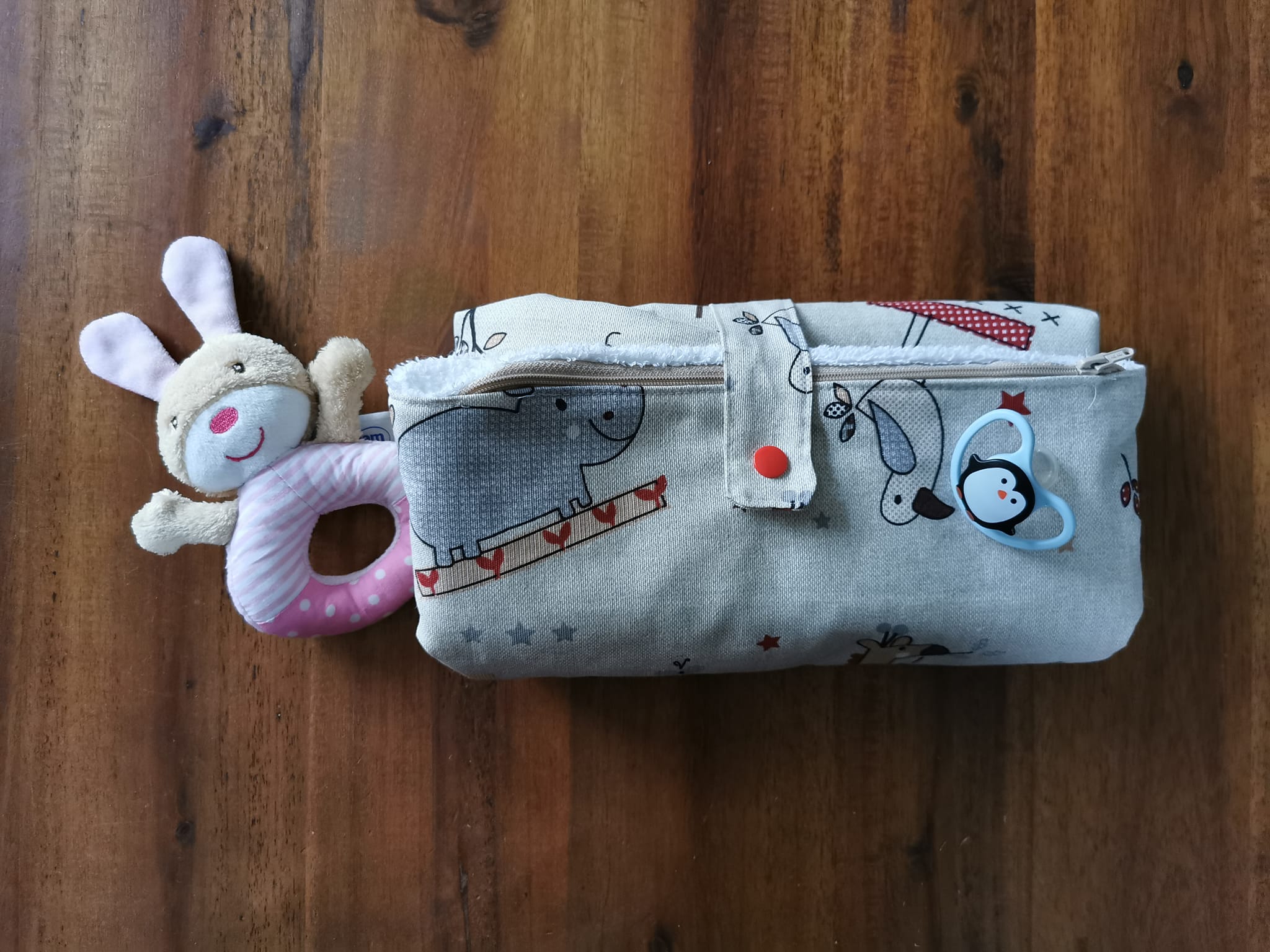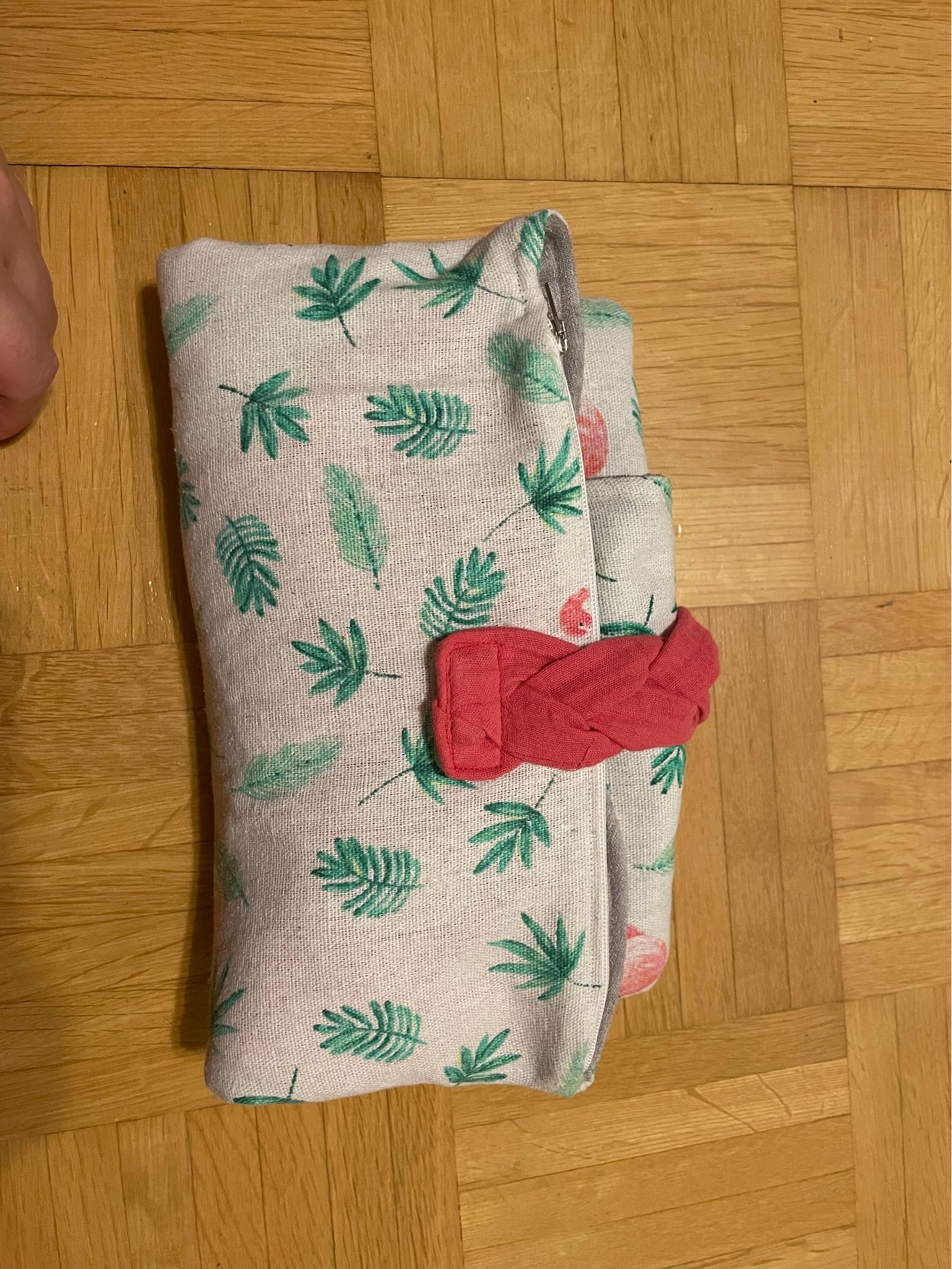 Die Wickeltasche kann aus allen festen, nicht dehnbaren Stoffen, wie Leder, Kunstleder,
