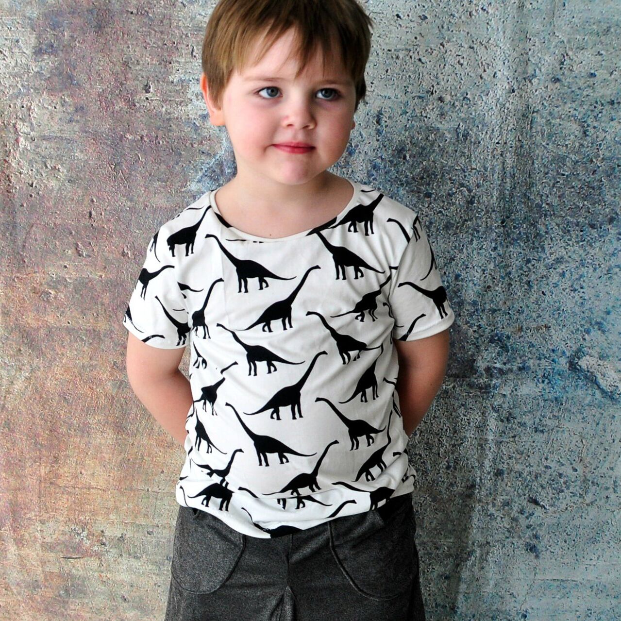 Das Schnittmuster umfasst die Doppelgrößen 50/56 – 158/164 und richtet sich nach der normalen Kaufgröße (Körpergröße).