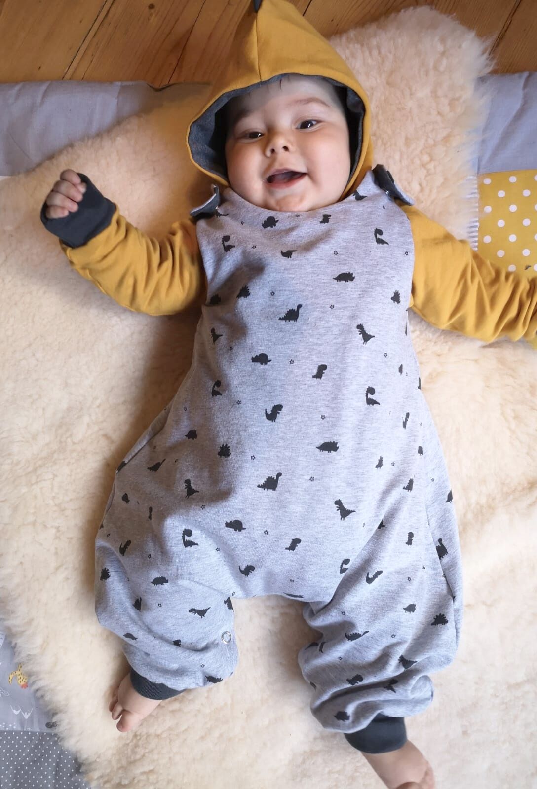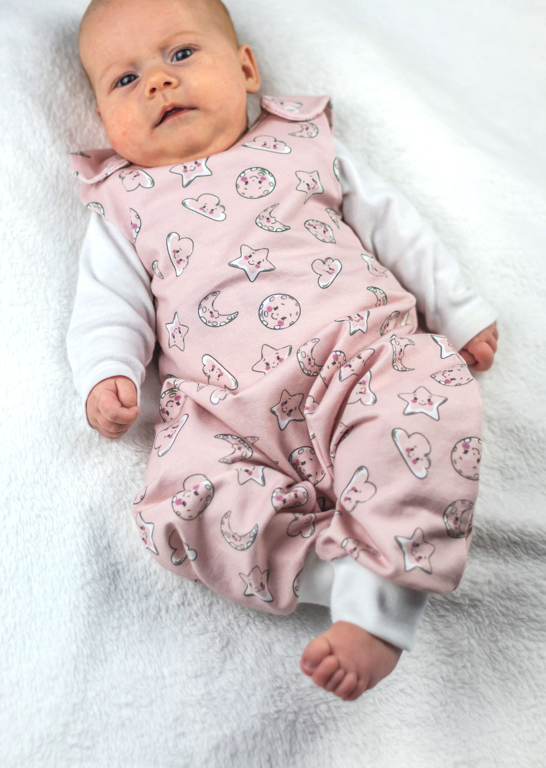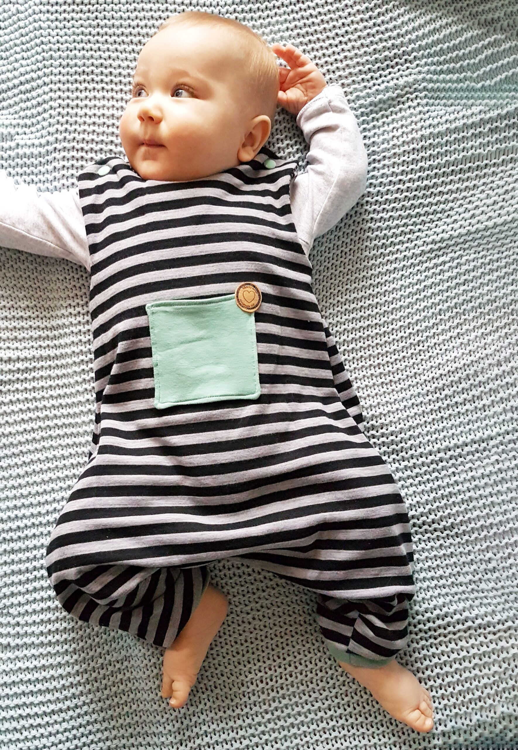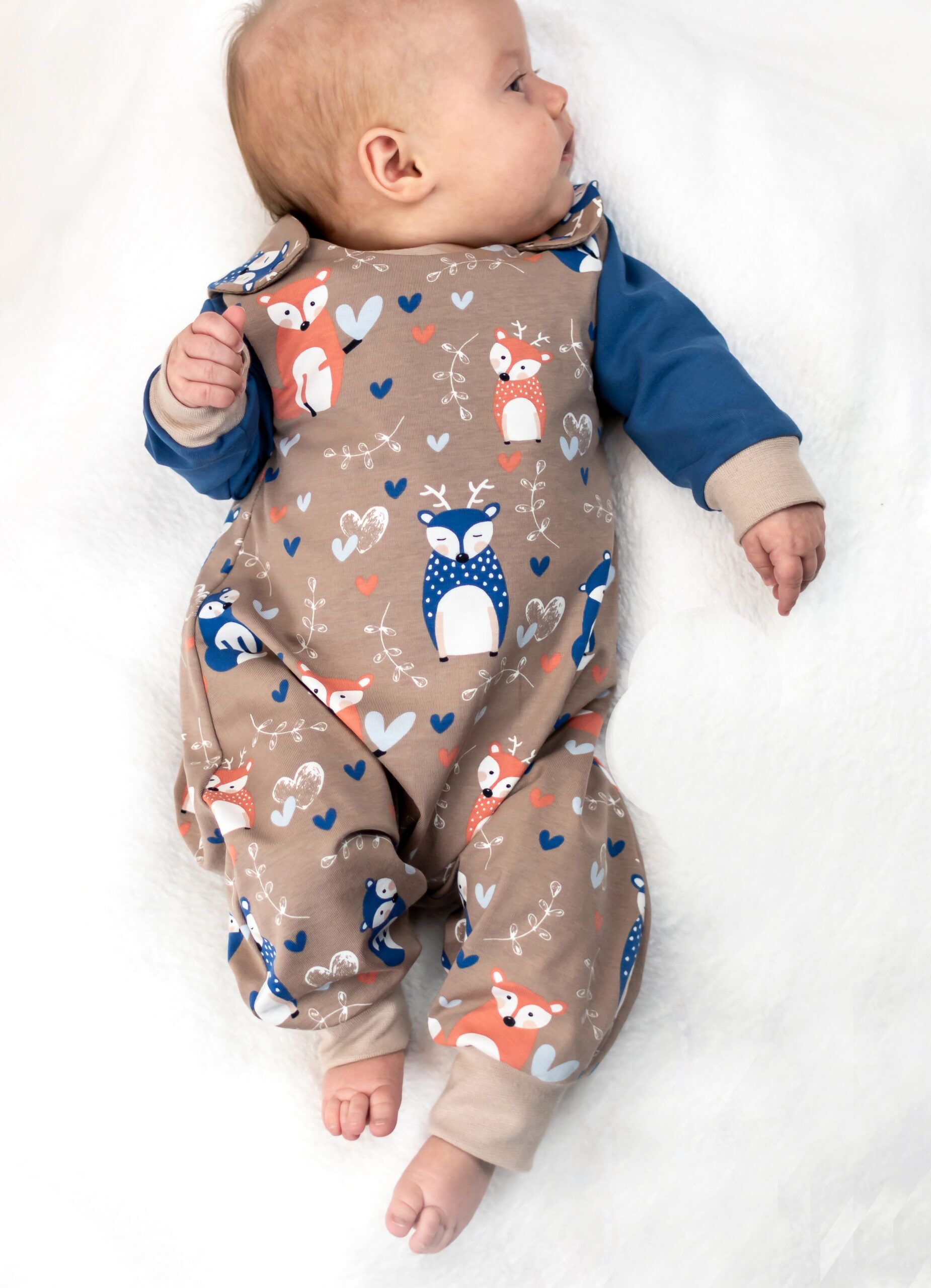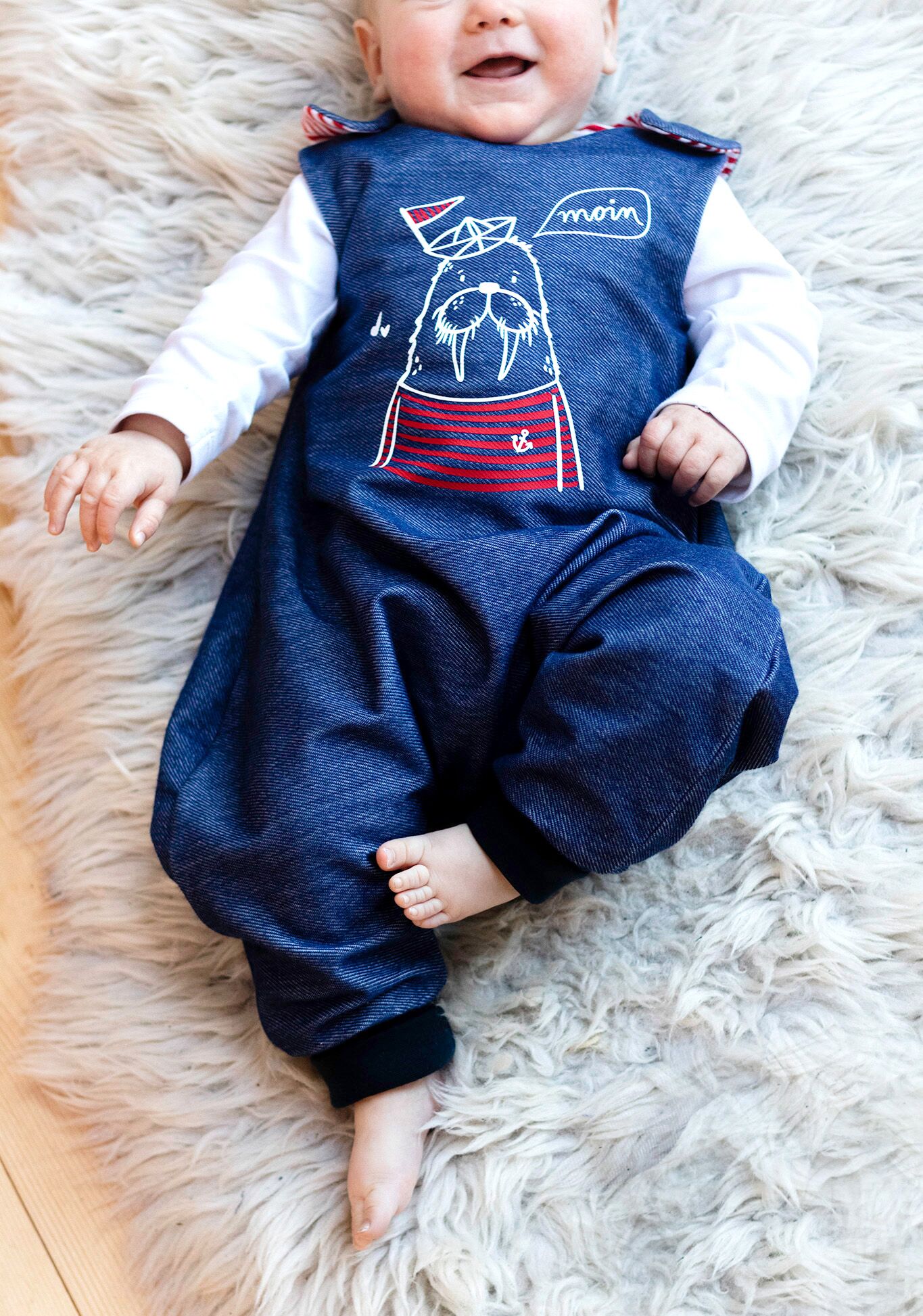Das Schnittmuster umfasst die Größen 50/56 bis 98/104. Bei der Wahl der richtigen Größe orientiere dich an der Körpergröße des Kindes (Kaufgröße).