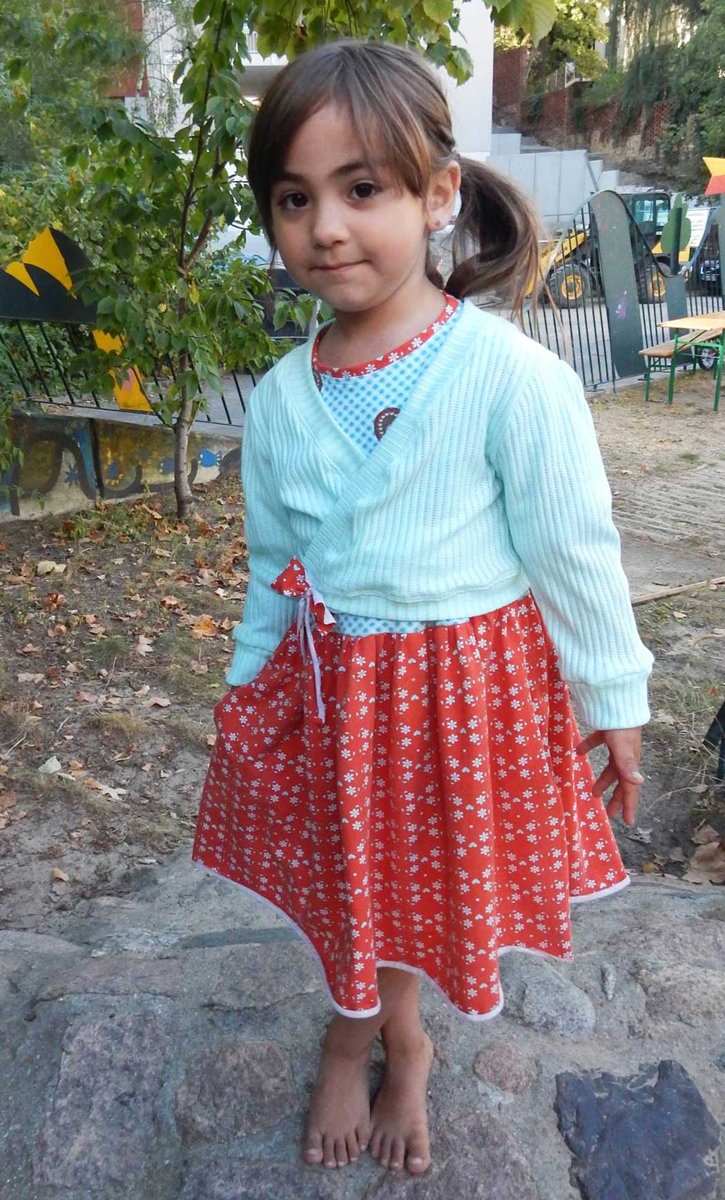 Das Schnittmuster umfasst die Doppelgrößen 74/80 – 170/176. Wähle die Größe entsprechend der Kaufgröße (Körpergröße) des Kindes.