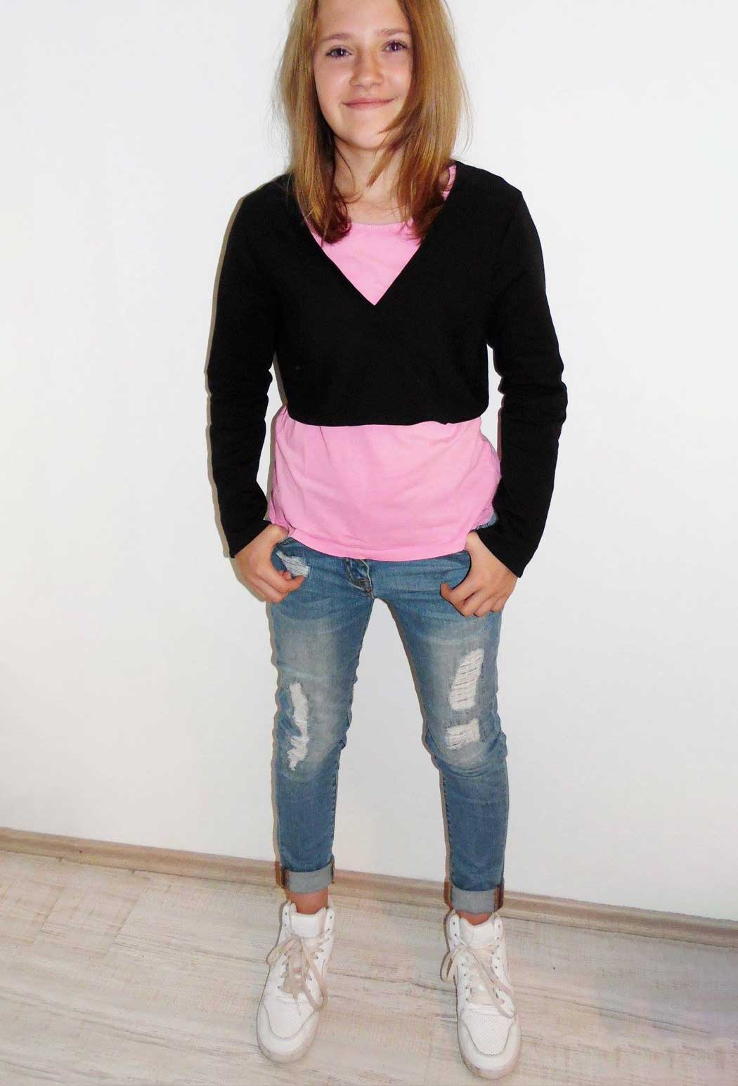 Mariposa kann für das ganze Jahr aus allen dehnbaren Stoffen, wie z.B. Jersey, Sweat, Strick, Fleece, Wollwalk etc. angefertigt werden.